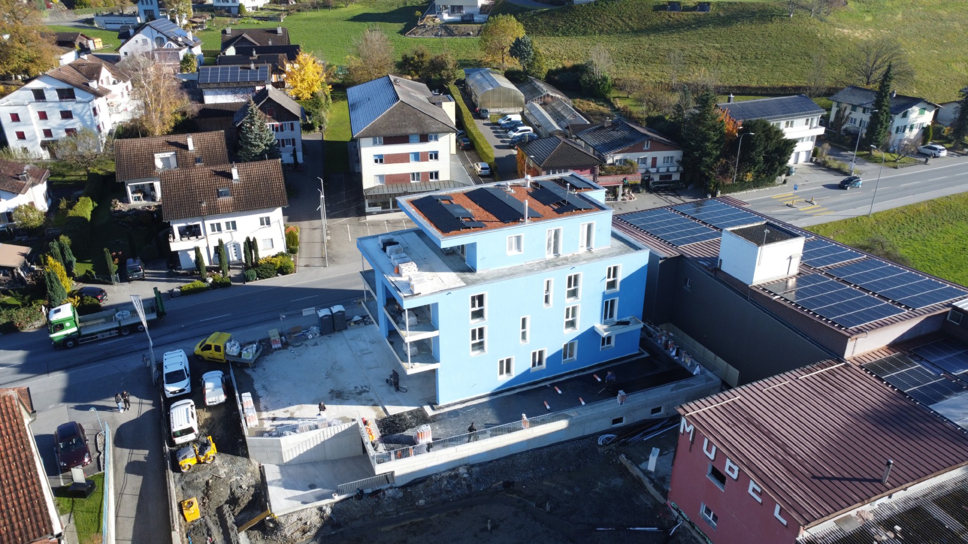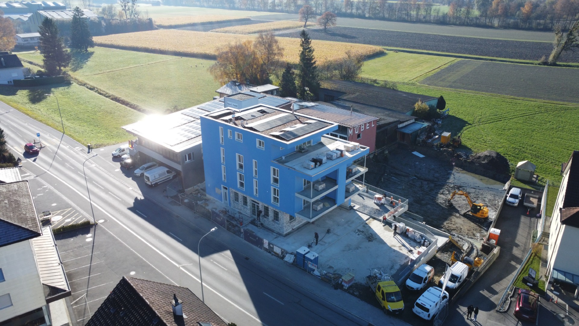 Wohn- und Geschäftshaus mit Tiefgarage und 4 Stockwerken.