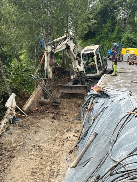 Pfählungsarbeiten für neue Stützmauer.